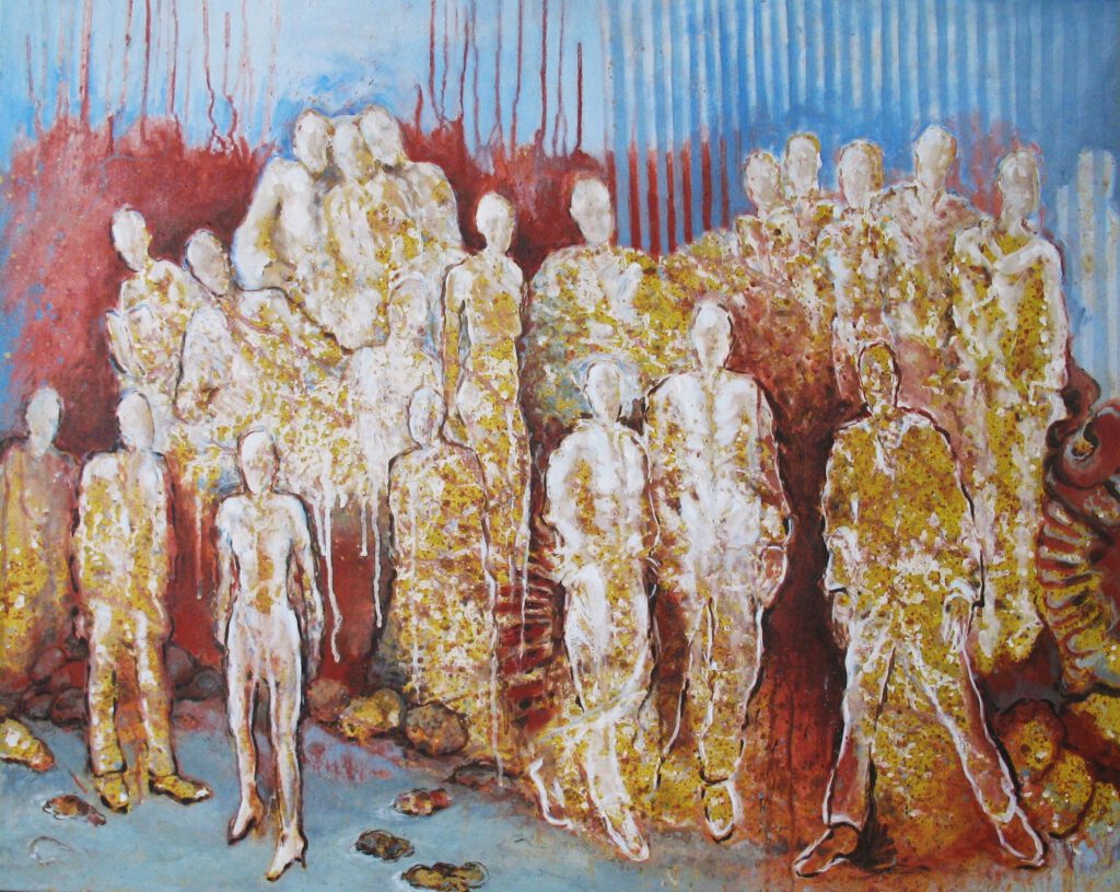 Mensfiguren – mixed media op papier